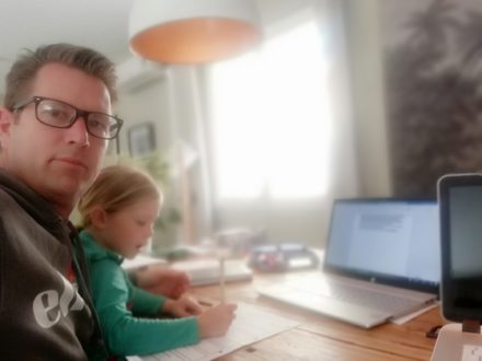 3, 6 en 9 aan de muren. De grote tafel waaraan we normaal werken, is gisteren omgetoverd tot werkblad waar met “klei” driehoeken, vierkanten en rondjes gemaakt worden. Daarvan kleeft de helft trouwens nu aan de onderkant van mijn laptop. We kunnen dus concluderen dat de grootste uitdaging wellicht niet het thuis werken is, maar de kinderen of beter gezegd, de combinatie van school en werk.