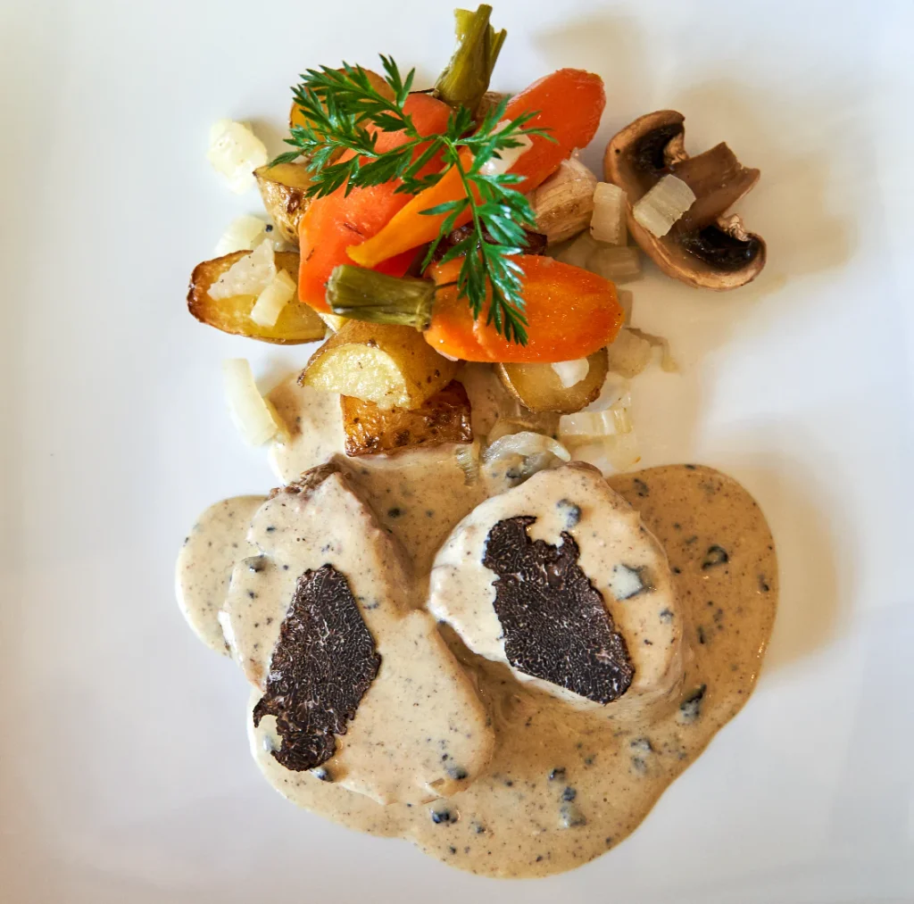 Gasten prijzen de warme sfeer en de attente service. Het restaurant heeft een vermelding in de MICHELIN Gids, wat getuigt van de kwaliteit en authenticiteit van de geboden gerechten. Voor wie van truffel houdt en een iets betaalbaarder restaurant als ‘Chez Bruno’ zoekt, is dit echt een aanrader. Een heerlijk gevarieerde kaart gebaseerd op de truffel van het seizoen.
